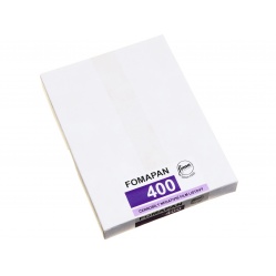 Fomapan 400 jest średnioczułym amatorskim negatywem - opakowanie zawiera błony cięte 4x5 cala czyli około 10,2x12,7 cm. zapakowane w kartonowe pudełko. Wewnątrz znajdują się w czarnym nieprzepuszczalnym dla światła foliowym woreczku i zabezpieczone są sztywnym kartonikiem z obu stron. Film ma dość duże ziarno, można go obrabiać w proszkowych i płynnych wywoływaczach każdej firmy dostępnej na rynku. Także wszystkie produkowane utrwalacze (i kąpiele przerywające i zwilżające) nadają się do obróbki tego filmu. Ze względu na wielkość błony praktycznie dużego ziarna nie widać, chyba, że zdecydujemy się na bardzo duże powiększenie. Oczywiście wielkość ziarna zależy od sposobu naświetlenia, warunków pogodowych, sposobu wywołania, rodzaju wywoływacza, terminu przydatności do użycia czy warunków przechowywania. Daje się forsować w górę o 1 i w dół o 1 lub 2 przesłony. Jest mało kontrastowy więc jest polecany do kontrastowego oświetlenia. Nie wołałem jeszcze błon Fomy 400 w formacie 4x5 cala i nie wiem jak wygląda maska tego negatywu.