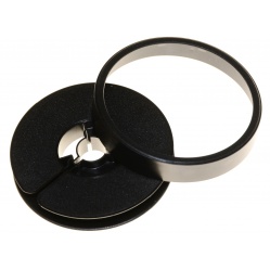 Szpula koloru czarnego z czarnym nasuwanym opakowaniem (pokrywką) chroniącym od kurzu, na film 8 mm super lub standard o długości 15 m. Sprzedajemy 10 sztuk szpulek.