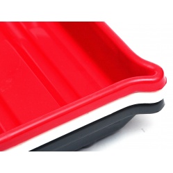 Kuweta firmy Paterson do papieru formatu 13x18cm. do chemii fotograficznej - zestaw 3 kuwet po 1 kuwecie w kolorze białym, szarym i czerwonym. Kuweta wykonana jest z bardziej miękkiego i mniej sztywnego tworzywa niż krajowe kuwety Czarno-Białe, co jednak nie ma większego znaczenia praktycznego.