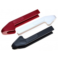 Zestaw szczypiec w 3 kolorach: czerwonym, prawie białym i ciemno szarym. Tradycyjnie trzymając je ściśnięte trzymamy odbitkę - zwalniając uścisk wypuszczamy ją. Bez nasadek gumowych, ale nie rysujące powierzchni zdjęcia. W szczególnym przypadku można oczyścić lekko nierówną powierzchnię końcówek trzymających. Praktycznie nie zdarzyło mi się tymi szczypcami porysować odbitkę, pomimo niezbyt równej powierzchni stykającej się z odbitką. Ściskając szczypce bliżej środka można bez problemy przytrzymać odbitki formatu 40x50 cm. Szczypce w sprzedawane są w komplecie, sprzedajemy także pojedyncze szczypce.