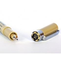 Pisak bezkwasowy Micron do podpisywania odbitek na podłożu papierowym lub plastikowym, filmów fotograficznych, a także wydruków z drukarek. Tusz jest odporny na wodę, kwasy i chemikalia. Rozmiar 04 - grubość 0,40 mm.