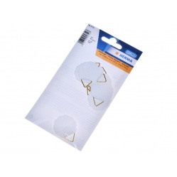 Wieszaki materiałowe z "pętelką" do zawieszania odbitek, rysunków itd. Zawieszkę przykleja się od tyłu zdjęcia - jest to samoprzylepny okrągły materiał - a zdjęcie zawiesza się na wystającym z zawieszki trójkąciku. W opakowaniu znajduje się 10 sztuk zawieszek osrednicy 30 mm., każda z nich, według producenta powinna wytrzymać obciążenie do 800 g !! Wododporny klej jest przystosowany do klejenia na drewnie, porcelanie, szkle, papierze itd. Po przyklejeniu wieszaka należy odczekac conajmniej pół godziny do zawiązania się kleju.