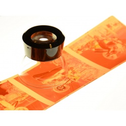 Okrągła lupa fotograficzna do oglądania m. in. filmów na podświetlarkach, o dużym 8 krotnym powiększeniu. Z czarną podstawką, obejmuje powierzchnię mniejszą niż klatka małoobrazkowa. Brzegi obserwowanego obrazu są zniekształcone. Nadaje się jednak do oceny stopnia ostrości wybranej części obserwowanej klatki. Używamy jej w praktyce przy ocenie jakości filmów ułożonych w koszulce na podświetlarce. Można ją także wykorzystać (? - choć tego nie robiliśmy) do oceny ostrości na matówce aparatu wielkoformatowego.