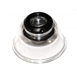 Okrągła lupa fotograficzna do oglądania m. in. filmów na podświetlarkach, o dużym 10 krotnym powiększeniu. Niska z przezroczystą podstawką. Obejmuje część powierzchni klatki małoobrazkowej. Umożliwia korekcję wady wzroku osoby,