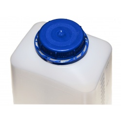 Butelka w kolorze mlecznym - lekko zamglonym... - o pojemności 2 litry z nakrętką w kolorze ciemno niebieskim. Przeznaczona do przechowywania chemii. Jest wykonana z jasnego tworzywa przepuszczającego światło ! Ma niestety bardzo wąski otwór wlewowy - dużo mniej wygodny od dostępnych u nas butelek innych producentów. Na butelce nie ma żadnej podziałki, skali czy napisu.