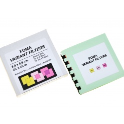 Filtry wielogradacyjne przeznaczone są do kopiowania na papierów wielogradacyjnych dowolnej firmy. Różnice w kopiowaniu na papierach filtrami różnych producentów mogą dotyczyć czasów naświetleń czy gęstości potrzebnej do otrzymania określonej gradacji. Zestaw zawiera trzy filtry żółte i trzy purpurowe. Można składać filtry zwiększając efekt ich działania. Format 9x9 cm. - pasuje do większości powiększalników występujących na naszym rynku: Opemus, Axomat, większość Krokusów. Nie pasują np. do Magnifaxa czy Krokysa 69 gdzie wymagany jest format 12x12 cm. Materiał z którego wykonano filtry nie jest zbyt gruby i łatwo daje się ciąć. Filtr żółty zmniejsza kontrast odbitki proporcjonalnie do jego gęstości, filtr purpurowy zwiększa jej kontrast. Filtry najczęściej umieszcza się w szufladce między źródłem światła a karetką z negatywem, czasem razem z mleczną szybką rozpraszającą światło żarówki. Dla powiększalników bez szufladki na filtry, przeznaczony jest zestaw filtrów zaobiektywowych firmy Ilford.