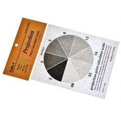 Przezroczysta formatka z folii w formacie 9x13 cm. z naniesionym kołowym klinem szarym - print calculator. Naświetlając zdjęcie przez położony na papierze klin 48 sekund, otrzymujemy próbki odbitki z czasem naświetleń od 0 do 48 sekund. Odczytujemy odpowiedni czas, kierując się jakością zdjęcia naświetlonego danym klinem szarości. Klin ułatwia znalezienie czasu naświetlania przy kopiowaniu odbitek, raczej małych i średnich formatów.