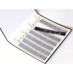 Segregator naszej produkcji, trochę węższy od sprzedawanych przez nas segregatorów Paterson. Ze sztywną MATOWĄ okładką z tektury w kolorze czarnym i mechanizmem zatrzaskowym do koszulek na diapozytywy, negatywy i pozytywy, cięte po 2, 3, 4, 5 lub 6 klatek w pasku (w zależności od formatu klatki) lub pocięte pojedynczo. Do kompletu 25 koszulek pergaminowych na film małoobrazkowy 35 mm.