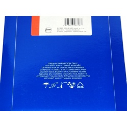 Amatorski papier stałogradacyjny czeskiej firmy Foma. Powierzchnia papierów: velvet 313, mat 312, błysk 311. Papiery Fomaspeed obrabia się w każdym wywoływaczu, przerywaczu czy utrwalaczu dostępnym na rynku. Podłoże plastikowe - nie wymaga długiego płukania oraz suszenia na gorąco. Odbitki należy płukać krótko i suszyć na wolnym powietrzu na leżąco lub w stanie wiszącym. Podłoże przy suszeniu musi przepuszczać powietrze np. materiał, tkanina, odbitki suszone na blacie stołu lub szkle nie wysuszą się od spodu ! Gradacje papieru są lekko zawyżone jeśli je porównać do nie produkowanych już polskich papierów Fotonbrom. Papier dostępny jest w czterech gradacjach: miękkiej, specjalnej normalnej i kontrastowej. Oznaczony na opakowaniu kolejno paskami koloru: zielonego, żółtego, czerwonego i niebieskiego. Gradację papieru dostosowuje się do gradacji negatywu na zasadzie przeciwieństwa aby wyrównać kontrast. Kontrastowy negatyw wymaga papieru miękkiego, negatyw miękki - papieru kontrastowego, a normalny - papieru normalnego. Papier o gradacji miękkiej daje bardzo małe kontrasty i słabą czerń oraz biel. Dużo półtonów ale w zawężonym zakresie. Z kolei papier kontrastowy - twardy - da bardzo mocną i głęboką czerń oraz czystą biel jednak ilość półtonów będzie mniejsza. Normalna gradacja oferuje normalną czerń, biel oraz ilość półtonów. Papier o nazwie specjalny znajduje się pomiędzy miękkim a normalnym. Efekt jaki otrzymamy na odbitce zależy nie tylko kontrastu użytego papieru ale w takim samym stopniu od gradacji negatywu. Papier o gradacji normalnej przy kopiowaniu z negatywu normalnego da prawidłowy obraz ale jeśli użyjemy negatywu kontrastowego to otrzymamy obraz bardziej kontrastowy. Przy negatywie miękkim otrzymamy odbitkę o dużo mniejszym kontraście. Prosimy zapytać o dostępność i wybrać powierzchnię papieru. Opakowanie 100 kartek formatu 9x13cm. w białym lub niebieskim pudełku. Prosimy zapytać o dostępność i wybrać powierzchnię papieru.