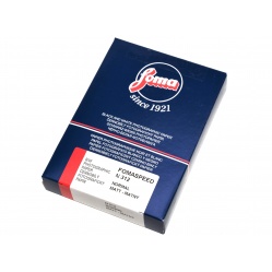 Amatorski papier stałogradacyjny czeskiej firmy Foma. Powierzchnia papierów: velvet 313, mat 312, błysk 311. Papiery Fomaspeed obrabia się w każdym wywoływaczu, przerywaczu czy utrwalaczu dostępnym na rynku. Podłoże plastikowe - nie wymaga długiego płukania oraz suszenia na gorąco. Odbitki należy płukać krótko i suszyć na wolnym powietrzu na leżąco lub w stanie wiszącym. Podłoże przy suszeniu musi przepuszczać powietrze np. materiał, tkanina, odbitki suszone na blacie stołu lub szkle nie wysuszą się od spodu ! Gradacje papieru są lekko zawyżone jeśli je porównać do nie produkowanych już polskich papierów Fotonbrom. Papier dostępny jest w czterech gradacjach: miękkiej, specjalnej normalnej i kontrastowej. Oznaczony na opakowaniu kolejno paskami koloru: zielonego, żółtego, czerwonego i niebieskiego. Gradację papieru dostosowuje się do gradacji negatywu na zasadzie przeciwieństwa aby wyrównać kontrast. Kontrastowy negatyw wymaga papieru miękkiego, negatyw miękki - papieru kontrastowego, a normalny - papieru normalnego. Papier o gradacji miękkiej daje bardzo małe kontrasty i słabą czerń oraz biel. Dużo półtonów ale w zawężonym zakresie. Z kolei papier kontrastowy - twardy - da bardzo mocną i głęboką czerń oraz czystą biel jednak ilość półtonów będzie mniejsza. Normalna gradacja oferuje normalną czerń, biel oraz ilość półtonów. Papier o nazwie specjalny znajduje się pomiędzy miękkim a normalnym. Efekt jaki otrzymamy na odbitce zależy nie tylko kontrastu użytego papieru ale w takim samym stopniu od gradacji negatywu. Papier o gradacji normalnej używa się w większości przypadków: przy kopiowaniu z negatywu normalnego da prawidłowy obraz ale jeśli użyjemy negatywu kontrastowego to obraz będzie bardziej kontrastowy. Przy negatywie miękkim otrzymamy odbitkę o dużo mniejszym kontraście. Prosimy zapytać o dostępność i wybrać powierzchnię papieru. Opakowanie 100 kartek formatu 10x15cm. normalnego matu w białym lub niebieskim pudełku.