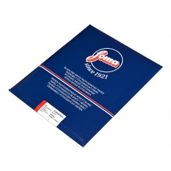 Papier stałogradacyjny na podłożu RC/PE do zastosowań amatorskich czeskiej firmy Foma. Kartonowa koperta zawiera 25 papierów w formacie 24x30cm. Papier o gradacji normalnej używa się w większości przypadków: przy kopiowaniu z negatywu normalnego da prawidłowy obraz ale jeśli użyjemy negatywu kontrastowego to obraz będzie bardziej kontrastowy. Przy negatywie miękkim otrzymamy odbitkę o dużo mniejszym kontraście. Ten format nadaje się najbardziej do wykonania stykówek negatywów w koszulkach lub bez - cały film mieści się na papierze bez problemu. Papiery Fomaspeed obrabia się w każdym wywoływaczu, przerywaczu czy utrwalaczu dostępnym na rynku zarówno proszkowym jak i płynnym. Podłoże plastikowe - nie wymaga długiego płukania oraz suszenia na gorąco. Odbitki należy płukać krótko i suszyć na wolnym powietrzu na leżąco lub w stanie wiszącym. Podłoże przy suszeniu musi przepuszczać powietrze np. materiał, tkanina - odbitki suszone na blacie stołu lub szkle nie wysuszą się od spodu tylko przylepią do podłoża ! Dostępna powierzchnia papierów: velvet 313, mat 312, błysk 311. Papier dostępny jest w czterech gradacjach, które należy wykorzystać przy odpowiednim kontraście negatywu: gradacji miękkiej, specjalnej normalnej i kontrastowej. Oznaczonych na opakowaniu kolejno paskami koloru: zielonego, żółtego, czerwonego i niebieskiego. Gradacje papieru są lekko zawyżone jeśli je porównać do nie produkowanych już polskich papierów Fotonbrom. Papier kontrastowy polecam użyć w celu podbicia małego kontrastu negatywu ewentualnie gdy wymagane są mocne czernie i duży kontrast niezależnie od gradacji filmu do kopiowania - jednak rezygnujemy wtedy z wielu półtonów, które zginą w czerniach i światłach. Gradację papieru dostosowuje się do gradacji negatywu na zasadzie przeciwieństwa aby wyrównać kontrast. Kontrastowy negatyw wymaga papieru miękkiego, negatyw miękki - papieru kontrastowego, a normalny - papieru normalnego. Papier o gradacji miękkiej daje bardzo małe kontrasty i słabą czerń oraz biel. Dużo półtonów ale w zawężonym zakresie. Z kolei papier kontrastowy - twardy - da bardzo mocną i głęboką czerń oraz czystą biel jednak ilość półtonów będzie mniejsza. Normalna gradacja oferuje normalną czerń, biel oraz ilość półtonów. Papier o nazwie specjalny znajduje się pomiędzy miękkim a normalnym. Efekt jaki otrzymamy na odbitce zależy nie tylko kontrastu użytego papieru ale w takim samym stopniu od gradacji negatywu. Prosimy zapytać o dostępność i wybrać powierzchnię papieru.