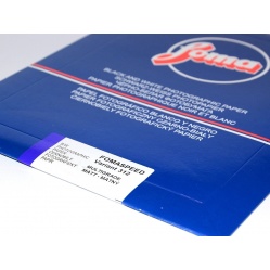 Papier wielogradacyjny na podłożu plastikowym. Dostępny w 3 rodzajach powierzchni: błysk - 311, mat - 312, półmat - 313. Foma wielogradacyjna jest bardziej kontrastowym papierem niż Ilford, odbitka wykonana bez korekcji daje obraz o większym kontraście. Papiery plastikowe (RC) są o wiele "szybsze" i wygodniejsze w obróbce, szczególnie w płukaniu, w stosunku do papierów o podłożu barytowym. Przy kopiowaniu należy użyć filtrów wielogradacyjnych lub głowicy Meograde lub kolorowej. Purpurowy kolor filtra zwiększa kontrast odbitki, żółty - zmniejsza, proporcjonalnie do gęstości. Mocniejsze filtry wymagają odpowiednio zwiększonego czasu naświetlania. Jeśli chodzi o oświetlenie ciemni - można je obrabiać przy lampach ciemniowych do papierów wielogradacyjnych: Ilforda, Kaisera, Patersona czy Rowi. Używając czerwonych żarówek fotograficznych nie powinno być problemu. W przypadku jakichkolwiek podejrzeń o zaświetlanie czy zaświetleń należy jak najkrócej oświetlać papier światłem ciemniowym. W przypadku długiego naświetlania czy wywoływania poleca się wyłączyć żarówkę. W przeciwnym razie można nie uzyskać czystej bieli a odbitka może być ogólnie zszarzała lub bez kontrastu - powodem jest zaświetlenie papieru przed lub w czasie wywoływania. Opakowanie 10 sztuk w kartonowej kopercie. Prosimy zapytać o dostępność i wybrać powierzchnię papieru.