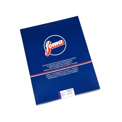 Papier wielogradacyjny na podłożu plastikowym - podłoże RC/PE, do zastosowań amatorskich, czeskiej firmy Foma. Kartonowe pudełko zawiera 50 papierów o powierzchni matowej 312 w formacie 30x40cm. Papier jest dostępny w 3 rodzajach powierzchni: błysk - 311, mat - 312, półmat - 313. Foma wielogradacyjna jest bardziej kontrastowym papierem niż Ilford, odbitka wykonana bez korekcji daje obraz o większym kontraście. Papiery plastikowe (RC) są o wiele "szybsze" i wygodniejsze w obróbce, szczególnie w płukaniu, w stosunku do papierów o podłożu barytowym. Przy kopiowaniu należy użyć filtrów wielogradacyjnych lub głowicy Meograde lub kolorowej. Purpurowy kolor filtra zwiększa kontrast odbitki, żółty - zmniejsza, proporcjonalnie do gęstości. Mocniejsze filtry wymagają odpowiednio zwiększonego czasu naświetlania. Jeśli chodzi o oświetlenie ciemni - można je obrabiać przy lampach ciemniowych do papierów wielogradacyjnych: Ilforda, Kaisera, Patersona czy Rowi. Używając czerwonych żarówek fotograficznych nie powinno być problemu. W przypadku jakichkolwiek podejrzeń o zaświetlanie czy zaświetleń należy jak najkrócej oświetlać papier światłem ciemniowym. W przypadku długiego naświetlania czy wywoływania poleca się wyłączyć żarówkę. W przeciwnym razie można nie uzyskać czystej bieli a odbitka może być ogólnie zszarzała lub bez kontrastu - powodem jest zaświetlenie papieru przed lub w czasie wywoływania. Opakowanie 10 sztuk w kartonowej kopercie.